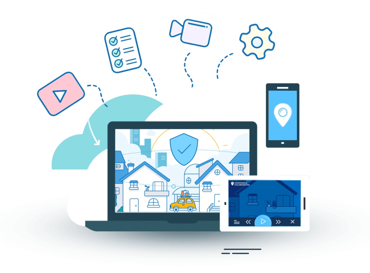 Conectamos sua rua em um sistema que permite acompanhar as imagens em tempo real, consultar gravações e trocar mensagens com os demais vizinhos em casos suspeitos. Cidade segura é cidade unida!